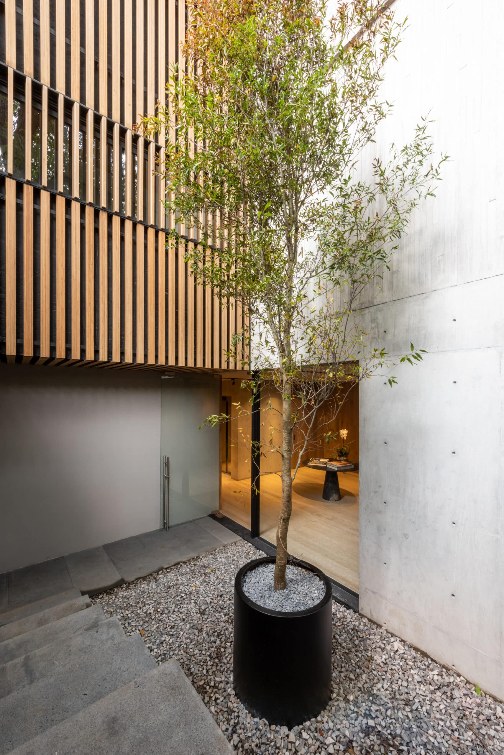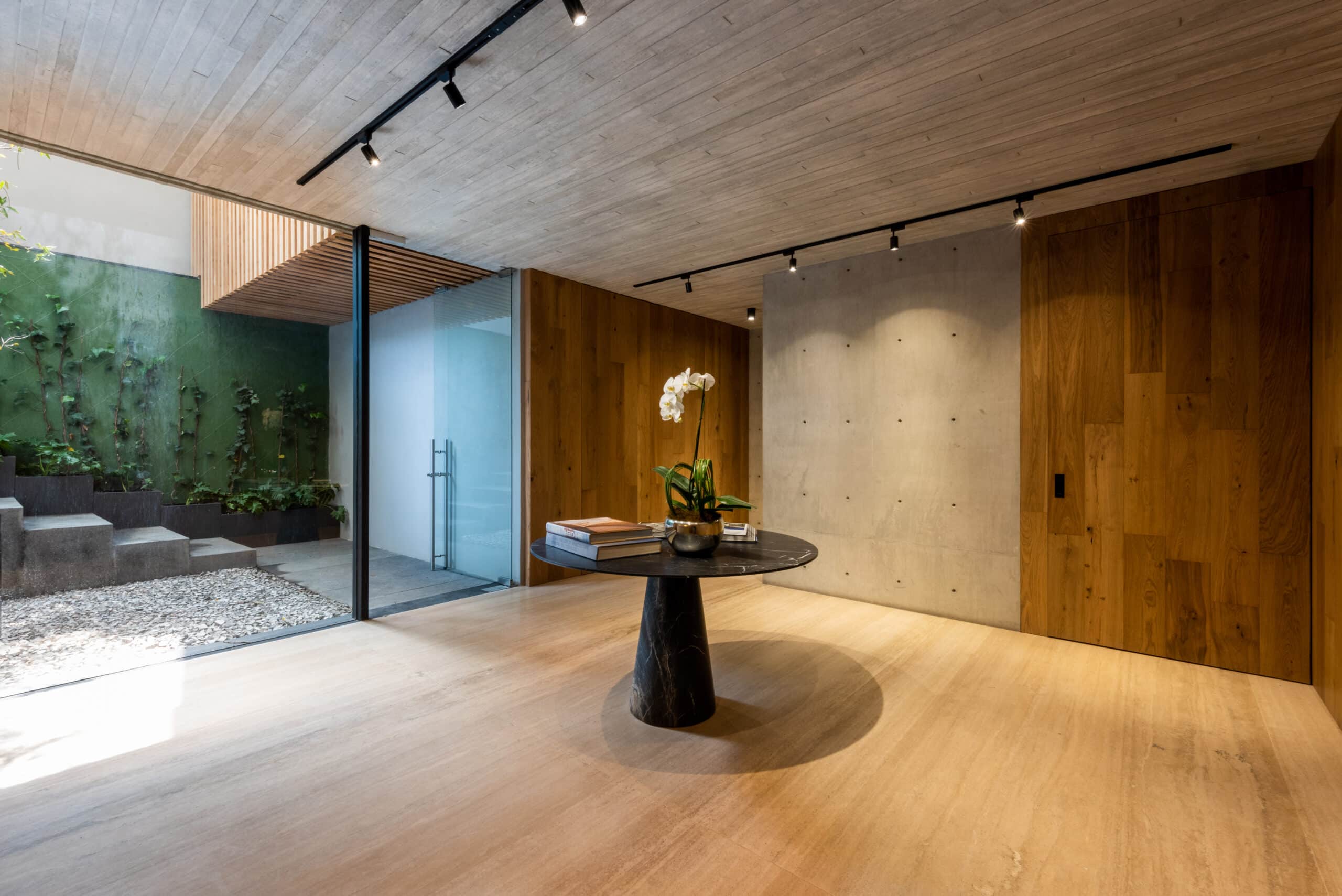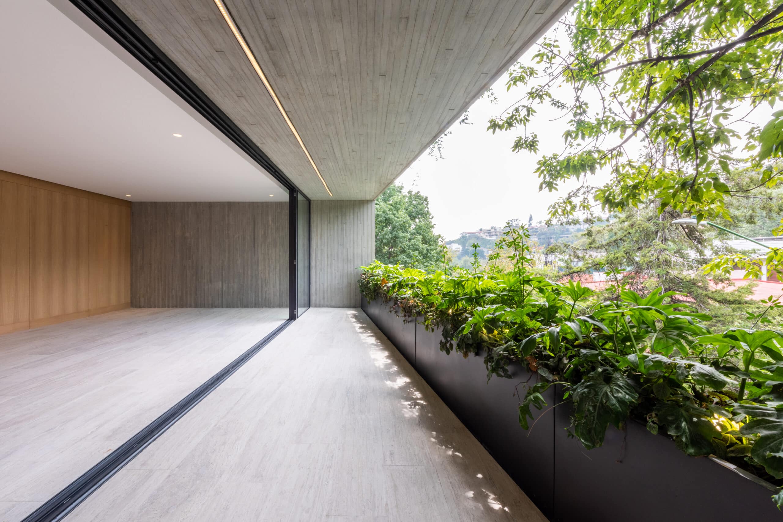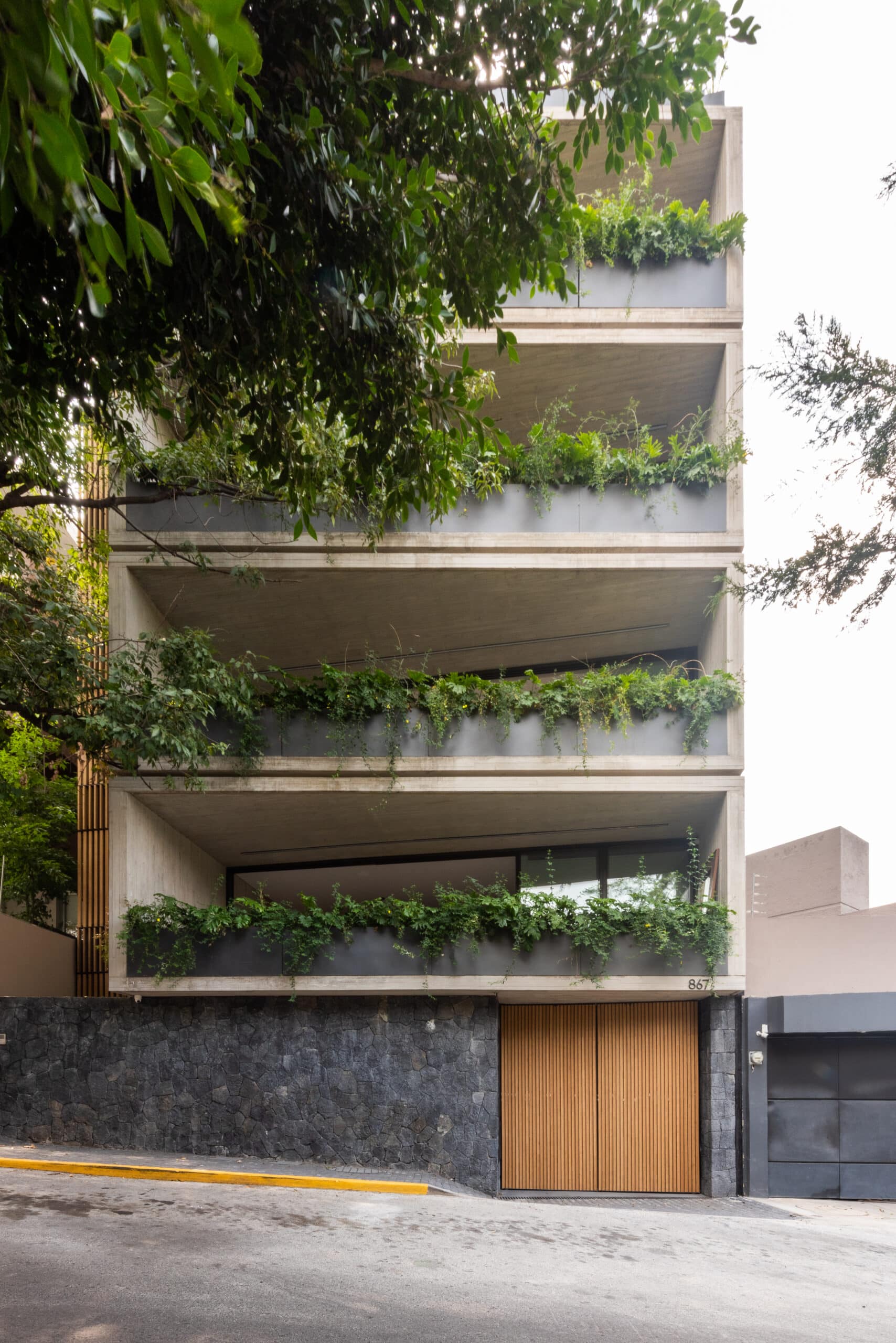 AN 867 es un desarrollo vertical ubicado en el Estado de México en una zona residencial al poniente de la Ciudad de México. El proyecto busca adaptarse al entorno con el uso de materiales sobrios como concreto y madera de pino natural.