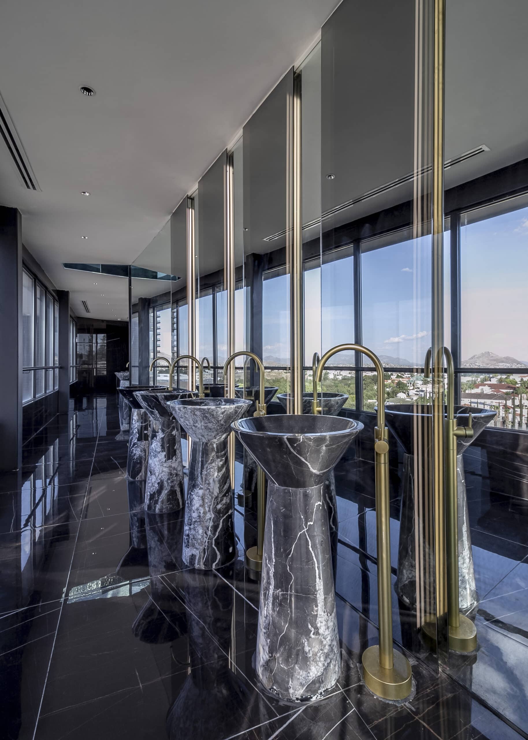 Los elementos icónicos en cada espacio forman parte de la misma arquitectura, conceptualizados para cumplir confunciones específicas y muy honestas en su materialidad como: metales, aluminio, concretos aparentes y acabados de mínimo mantenimiento, materiales sofisticados para una agradable bienvenida a los visitantes.