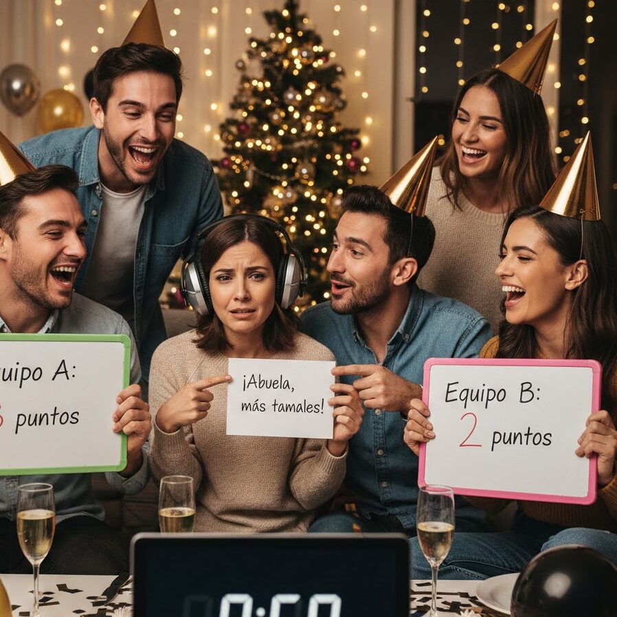 Este es uno de los juegos para Año Nuevo con el que podrás divertirte y reírte mucho con tus seres amados. Consiste en recolectar frases y palabras típicas de tu familia o tus amigos para adivinarlas por equipos. La persona que adivinará las palabras o las frases tendrá 2 minutos y deberá tener audífonos con música al punto en que no escuche, sólo podrá leer los labios. El equipo que adivine más, ¡gana!