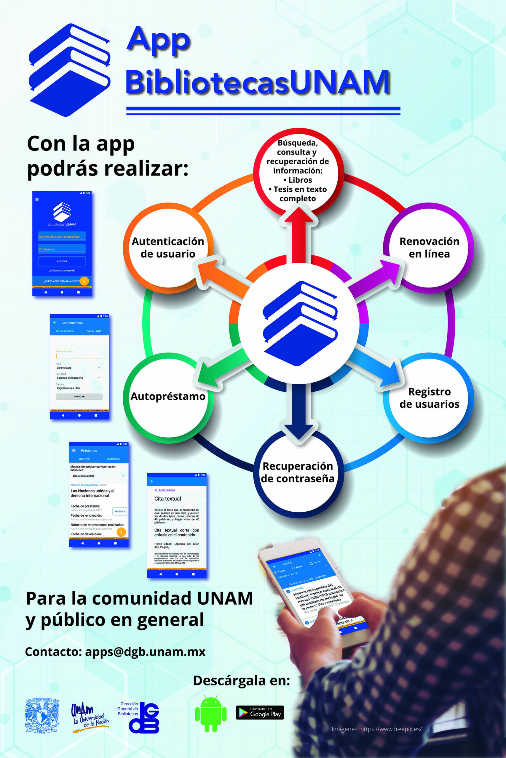 📱 ¿Sabías que puedes llevar toda la biblioteca de la UNAM en tu celular? La app Bibliotecas UNAM te da acceso a más de 1.5 millones de libros, revistas y recursos académicos. Y sí, puedes renovar préstamos, escanear códigos de barras para autopréstamo y hasta encontrar bibliotecas cerca de ti con geolocalización.