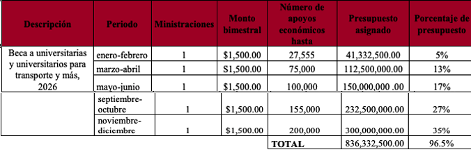 Duración del apoyo: Recuerda que la entrega del apoyo económico será de $1,500 bimestrales; es decir,