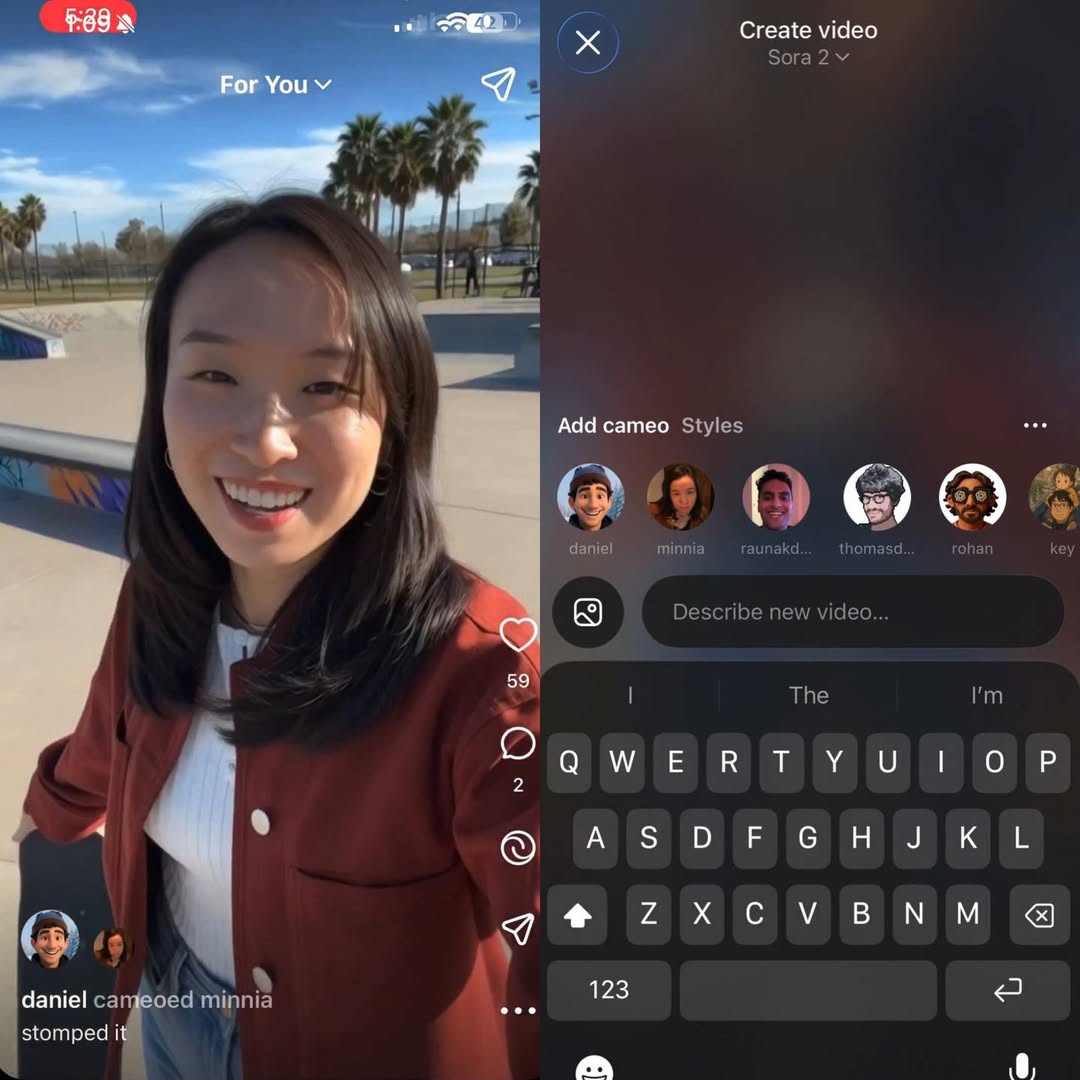 • Comparte tu identidad digital: Puedes dar permiso a tus amigos para usar tu “cameo” en sus videos, permitiendo crear escenas con varias personas juntas, lo que abre un mundo de posibilidades para el contenido colaborativo y el entretenimiento.