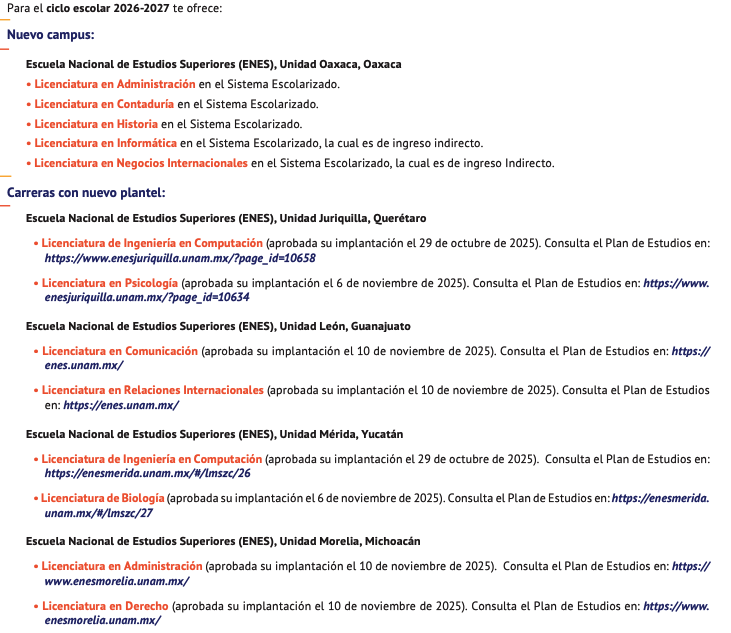 Tal y como señala la máxima casa de estudios en su convocatoria, con el propósito de ampliar su oferta educativa en el nivel Licenciatura y su presencia el territorio nacional, la UNAM ha realizado importantes esfuerzos para abrir un nuevo campus; cambiando la forma de ingreso de una Licenciatura, así como ofertar ocho licenciaturas con nuevo plantel.