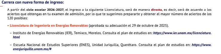 - Para el caso de las carreras que se imparten en la modalidad a Distancia del SUAyED, deberán cursar y aprobar satisfactoriamente, de manera adicional el Programa de Apoyo al Ingreso (PAI), el cual se realizará vía internet del 18 de mayo al 14 de junio de 2026, en https://pai.cuaed.unam.mx/