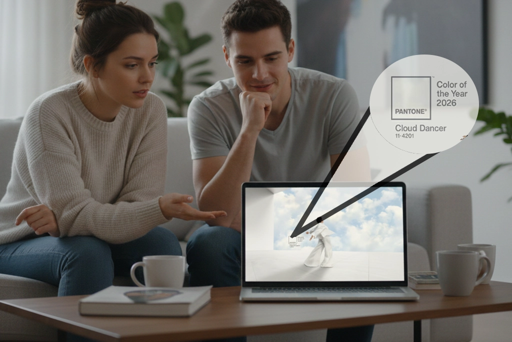 Esta elección sigue una línea de tendencias de color que reflejan nuestro momento histórico. El reconfortante Mocha Mousse (2025) y el cálido Peach Fuzz (2024) anteceden a Cloud Dancer, mostrando una evolución hacia la búsqueda de paz y espacios para respirar. Elegir el color del año es, en esencia, traducir nuestras aspiraciones colectivas a un lenguaje visual universal.