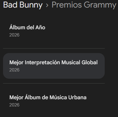 LOS PREMIOS QUE BAD BUNNY GANÓ EN LOS GRAMMY 2026