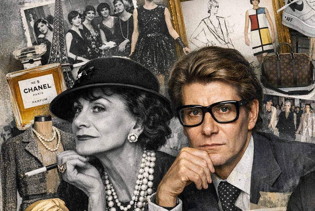 Tomó el relevo en Dior y luego hizo historia por su cuenta. YSL popularizó el esmoquin para mujeres (Le Smoking), introdujo la alta costura inspirada en el arte pop y llevó el lujo a la calle con su línea prêt-à-porter Rive Gauche, democratizando la moda.
