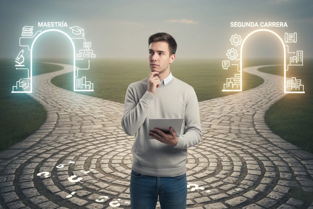 Terminaste la licenciatura y el mundo laboral te espera… o tal vez no. Muchos se topan con una encrucijada: profundizar en lo que ya saben o explorar un campo totalmente nuevo. La decisión entre una maestría o segunda carrera puede paralizarte, pero no tiene por qué. Esta vez analizamos las diferencias clave, ventajas y el perfil ideal para cada opción, para que tu elección sea estratégica y clara.