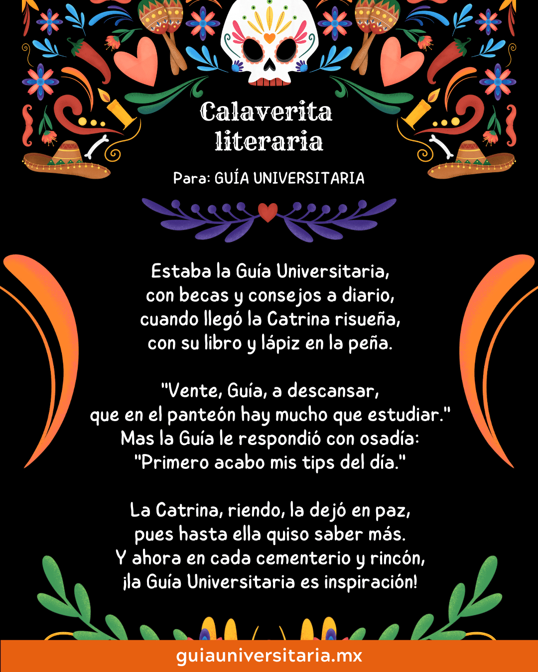 Tu Guía Universitaria te motiva a dejar de ser espectador y convertirte en partícipe de esta tradición. Te desglosamos la historia prohibida de las calaveritas literarias, su profundo significado cultural como crítica social disfrazada de humor y, lo más importante, te damos los tips definitivos para que te animes a escribir la tuya y mantengas viva esta costumbre. Prepárate para ver a la muerte no con miedo, sino con una sonrisa y una pluma afilada.