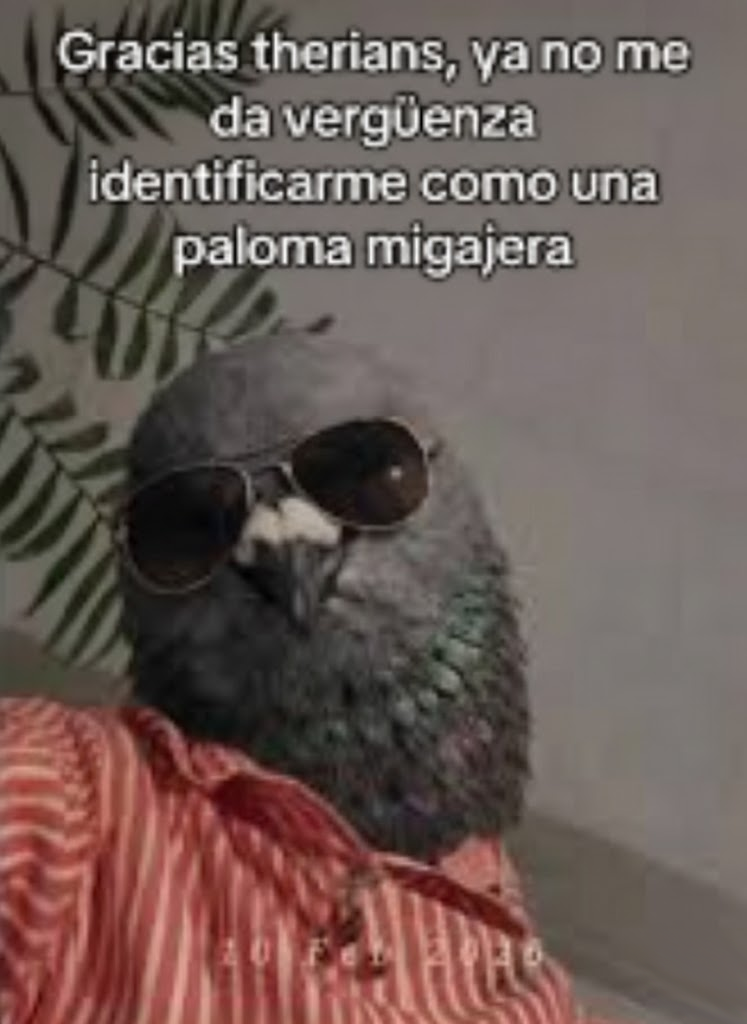 Si después de entender qué son los therians aún no encuentras tu lugar en la cadena alimenticia, quizás tu identidad animal pertenece a la especie más conformista del campus: la paloma migajera que puede ser la más cuerda en toda su vida, menos en el aspecto amoroso. ¡Y lo sabes!