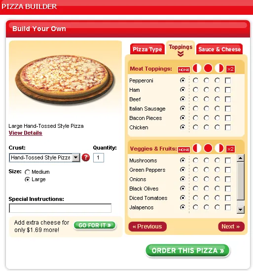 Era, esencialmente, un formulario. Un formulario con una lista de ingredientes, tipos de masa y bebidas. El usuario podía rellenarlo con su pedido, añadir su dirección y número de teléfono, y enviarlo a través de la red. Eso era todo. Había nacido el comercio electrónico.