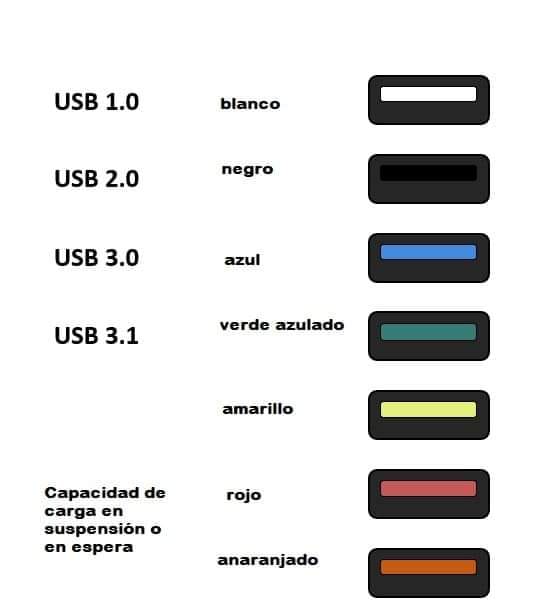 • Verde azulado (Turquesa): Representa al USB 3.1, hermano del morado en capacidades. Ofrecen velocidades de transferencia de datos de hasta 10 Gbps.